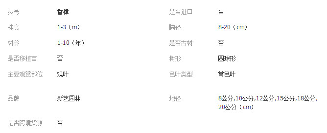 單價 1700.00 / 棵對比