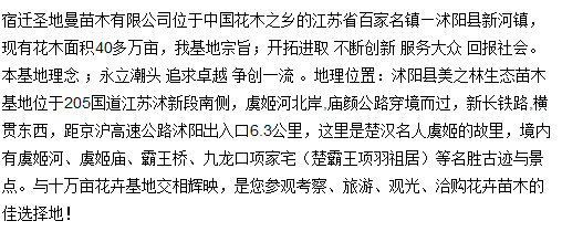 公司:宿遷圣地曼苗木有限公司 地址:江蘇省宿遷市沭陽(yáng)縣新河鎮(zhèn)