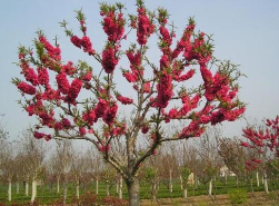 龍柱碧桃為桃的栽培品種,樹形呈圓柱狀,多直立;花枝繁密,花多艷麗,花期長40天。喜光、喜陽光充足環境,耐旱,耐高溫,‘龍柱’碧桃的快速繁育,主要用嫁接法。育苗流程包括整地、育砧、嫁接、接后管理等主要措施。主要用于觀賞。