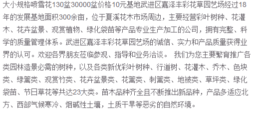 公司:常州市豐彩花草園 地址:中國江蘇常州武進區(qū)夏溪花木市場29幢82號
