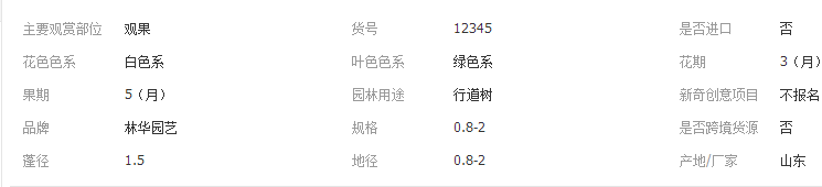 單價 7.30 / 棵對比