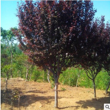 紫葉李,別名:紅葉李,薔薇科李屬落葉小喬木,高可達8米,原產亞洲西南部,中國華北及其以南地區廣為種植。葉常年紫紅色,著名觀葉樹種,孤植群植皆宜,能襯托背景。尤其是紫色發亮的葉子,在綠葉叢中,像一株株永不敗的花朵,在青山綠水中形成一道靚麗的風景線。