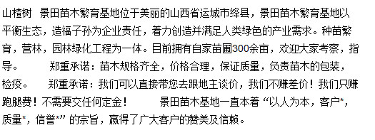 首頁 > 供應產品 > 8-9-10公分山楂樹價格_8-9-10公分山楂樹價格_供應