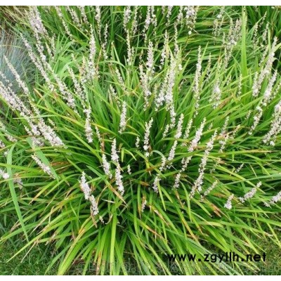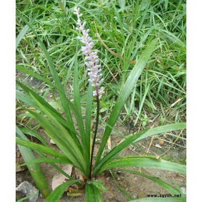 (188電5361話1523.)沿階草屬常綠草本植物,根較粗,中間或近末端常膨大成橢圓形或紡錘形的小塊根,莖很短,生成叢,禾葉狀,披針形,先端漸尖,種子球形,花期5-8月,果期8-9月