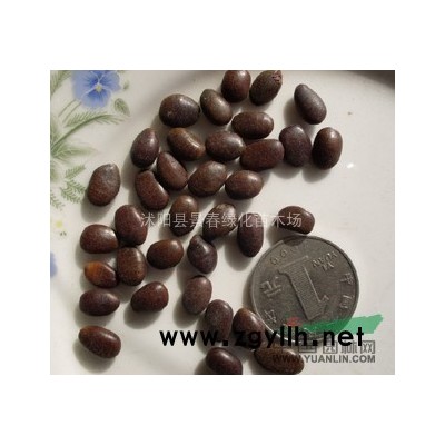 桂花的花簇生于葉腋,每節有1~2個花序,有些栽培品種能長出4~8個花序,每個花序有小花3-9朵,花梗纖細?;ㄝ?齒裂,花冠裂片4枚,呈鑷合狀排列,質厚,花色因品種而不同。桂花為完全花,雌蕊柱頭2裂,子房2室,每室有2個胚珠。雄蕊2枚,著生在花冠筒的近頂部,花絲*短。 桂花樹開花結果,是正?,F象,只要樹齡成熟,周邊水、肥、溫度、土壤、大氣等環境適宜,桂花和其他樹木一樣,可以年年開花結果。桂花通常每年9~10月開花,次年4月果熟。在南方,桂花結果十分普遍,人們繁殖桂花樹通常用果實播種。而地處桂花自然分布區域的北緣,氣溫相對偏低,結果現象也就相對較少。 桂花果實一般在4~5月間成熟,當果皮由綠色逐漸轉變為紫藍色時即可采收。采收后灑水堆漚,清除果肉,陰干種子,混砂貯藏。桂花種子有后熟作用,至少要有半年的砂藏時間,貯藏至當年10月份進行秋播或翌年春播。桂花種子的播種 1.采種桂花9~10月開花,果實于翌年3月下旬至4月下旬成熟。當果實進入成熟期,果皮由綠色逐漸轉為紫黑色時即可采集。采集的果實堆漚3天左右,待果皮軟化后,浸水搓洗,去果皮、果肉,得到凈種,稍加晾干濕潤沙藏。因桂花種子有后熟期,一般要濕沙催芽8個月后才能發芽。但由于有的品種不結實或結實少,加上采用播種法育成的苗到開花的年限較長,需要10多年才開花,變異大,所以苗木生產者和家庭養花愛好者都很少采用這種方法。 2.育苗常用播種育苗法。播種育苗能獲得大量的桂花實生苗,適宜用作行道樹。播種常用寬幅條播,行距20~25cm,幅寬10~12cm,每畝播種20公斤,每畝地產桂花苗2.5~3萬株。播種前要將種臍朝向一側,覆一二厘米的細土,再蓋上薄層稻草,噴水至土壤濕透,以防土壤板結和減少水分蒸發。當種子萌發出土后,及時揭草,將草放置于行間,既可保持土壤濕潤,又能防止雜草生長。 桂花的其它繁殖方法 嫁接一般以大葉女貞、小葉女貞為砧木,可以嫁接金桂、銀桂或其他品種桂花,但是樹長大以后,容易從嫁接部位折斷,因此必須進行“換頭”,就是成活后逐漸讓嫁接部位長出根,換掉下面的砧木。 桂花繁殖,高壓更加實用簡單,效果也比嫁接快,3年左右可以開花(嫁接往往要4年)。