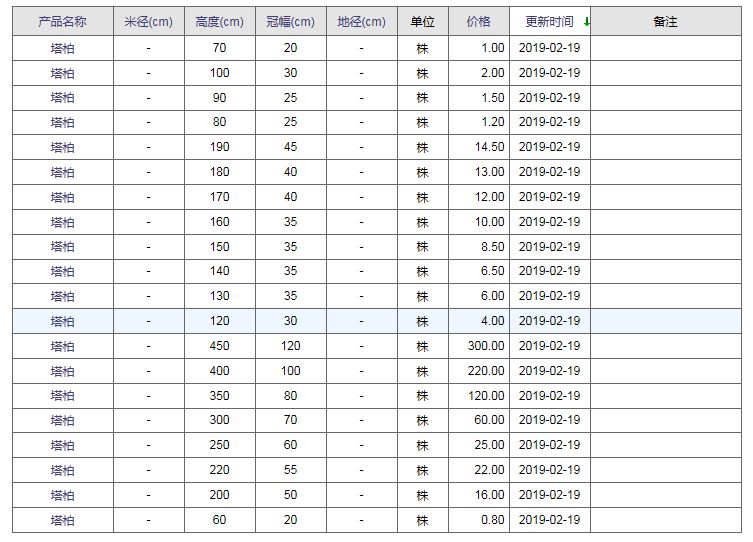塔柏行情