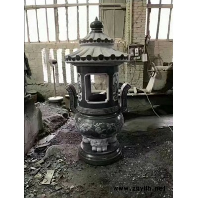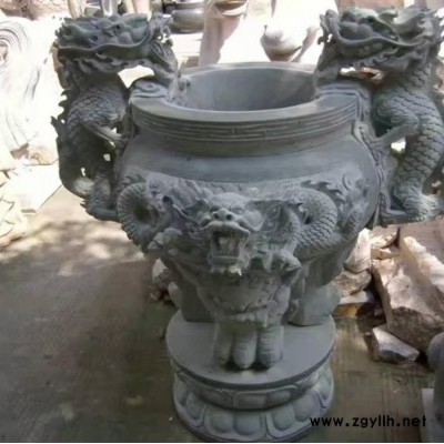 雙龍三足石雕香爐天然青石雕刻