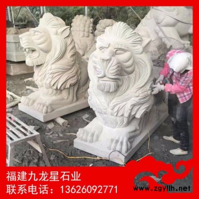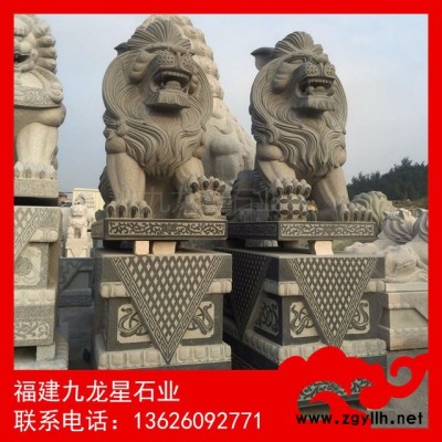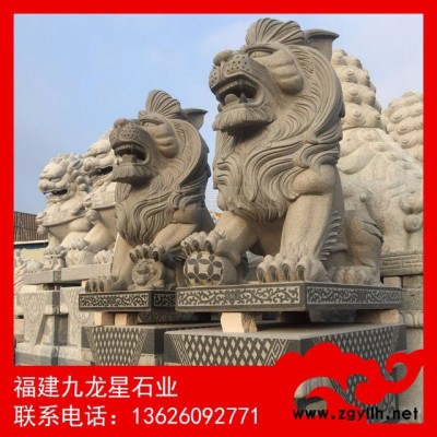 石雕獅子 石雕港幣獅 芝麻黑港幣獅 福建石獅子